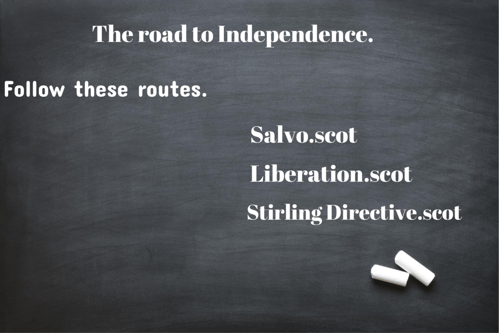 When Holyrood reconvenes in September at some point they will be presented with a gift from Salvo, (acting on behalf of the People of Scotland). The label on the box will read, “The Stirling Directive”!
