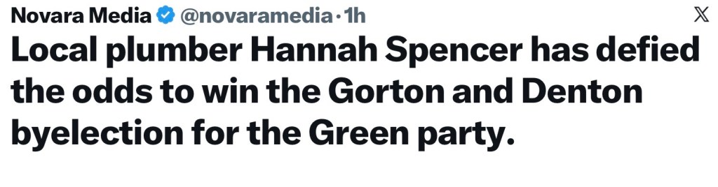 This alliance was created to fill such a gap. The interesting thing for me about the Greens winning at Gorton and Denton was the lady who won it, is just an ordinary person…..a plumber and plasterer.